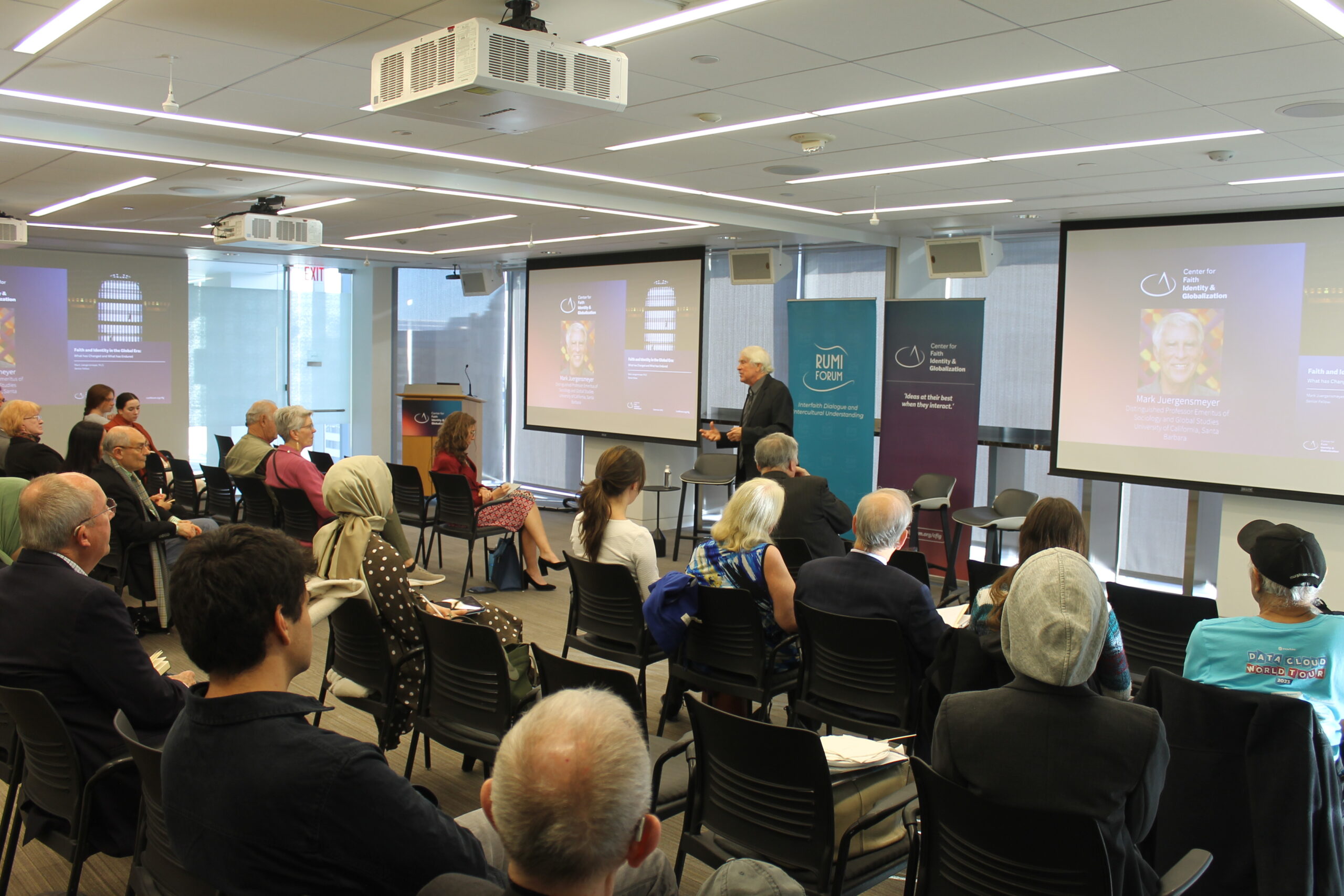 Rumi Forum’s Center for Faith, Identity, and Globalization was glad to hold its inaugural panel on October 28, 2024, “Rethinking Religion and Nationalism in the Global Landscape,” featuring Mark Juergensmeyer of the University of California, Santa Barbara, and Paul Marshall of Baylor University, and Allison K. Ralph, Founder & Principal at Cohesion Strategy, moderated the panel.