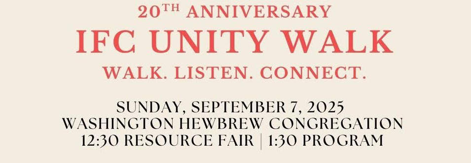 The Interfaith Council of Metropolitan Washington invites you to the largest interfaith gathering in the Washington, DC Metro Area! On Sunday, September 7th (12:30-5:30pm) Massachusetts Ave. NW becomes a public celebration of shared humanity. The 20th Annual Unity Walk, hosted by IFC invites people of all faiths and none to walk together, visit 11 sacred spaces, and experience powerful moments of music, food, culture, and connection.